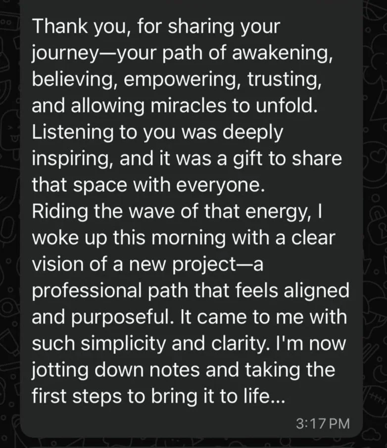 Because when you have a Family behind you, one that sees you, accepts you, and encourages you—your transformation accelerates tenfold. And this family isn’t defined by blood. It is the family you choose. Family means unconditional love, collaboration, celebrating each other, sharing our gifts, and daring to dream together.